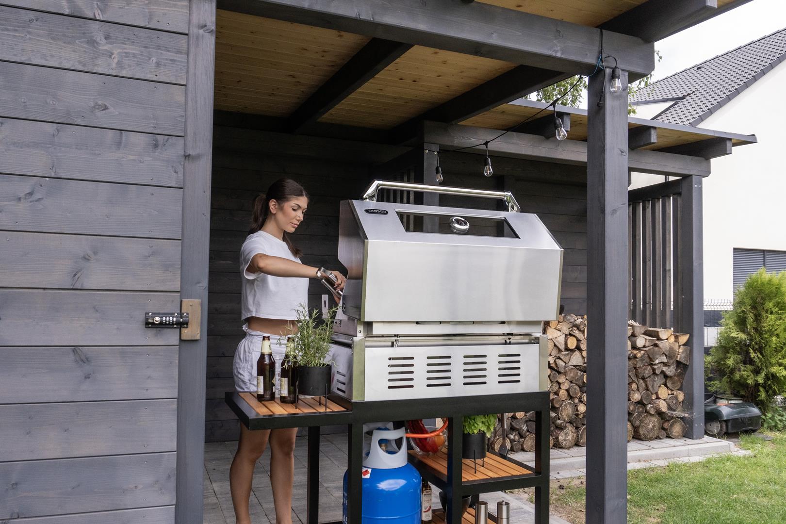 Découvrez la cuisine de jardin PARVI XL – une version plus petite pleine de style. Si vous aimez le design industriel, cette cuisine deviendra un véritable joyau dans votre espace extérieur. PARVI XL allie l’austérité de l’acier inoxydable 304, dont est faite le barbecue, au caractère industriel des meubles noirs mats, créant un ensemble harmonieux qui attire le regard et définit le style moderne.