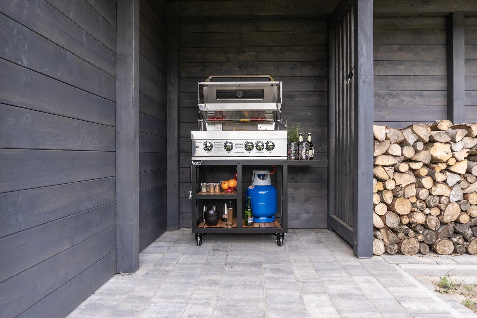 Les tablettes en bois ajoutent de la chaleur et équilibrent l’atmosphère austère, créant un espace parfait pour le stockage et la présentation. Compact mais plein de caractère, le modèle PARVI XL apporte une nouvelle dimension à la cuisine en plein air. C’est une cuisine qui s’intègre parfaitement dans un jardin, une terrasse ou un balcon de petite taille, sans rien perdre de sa fonctionnalité ni de son charme.