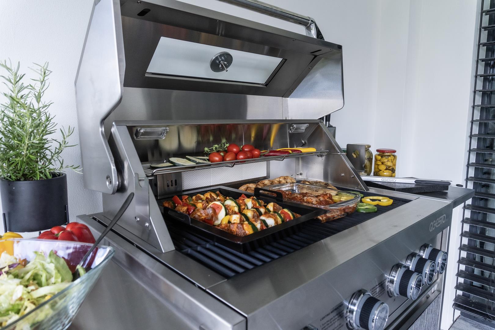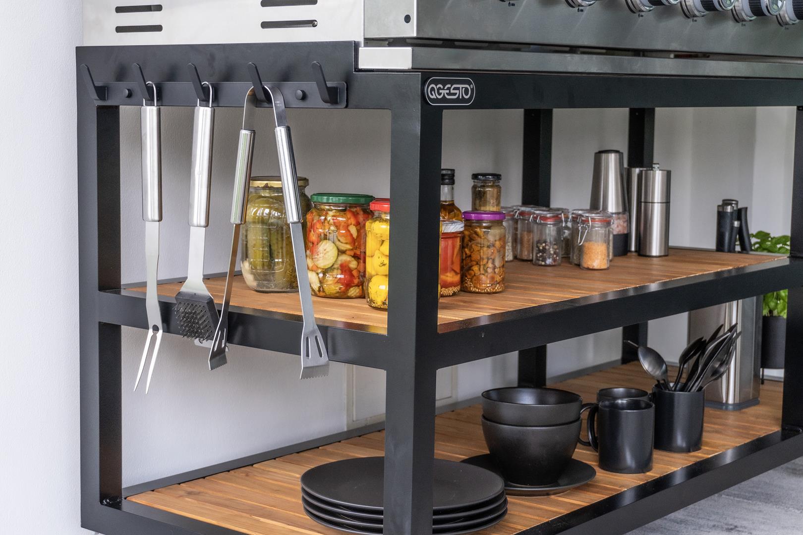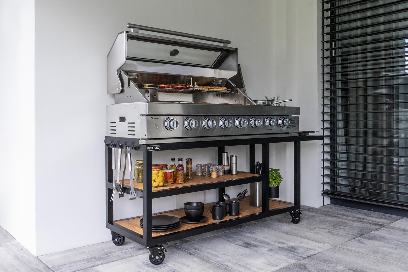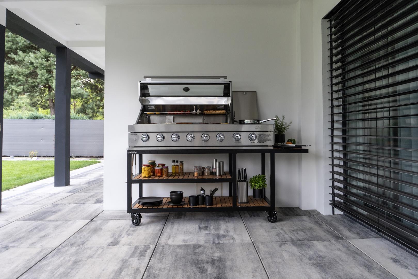Transformez votre cuisine d’extérieur avec la cuisine de jardin PARVI XXL qui apporte le style loft directement dans votre jardin. Avec son beau barbecue en acier inoxydable 304 durable, le modèle PARVI XXL se distingue non seulement par sa robustesse, mais aussi par son aspect unique. La finition noire mate des meubles donne à la cuisine un aspect brut et industriel qui s’intègre parfaitement à l’environnement moderne.