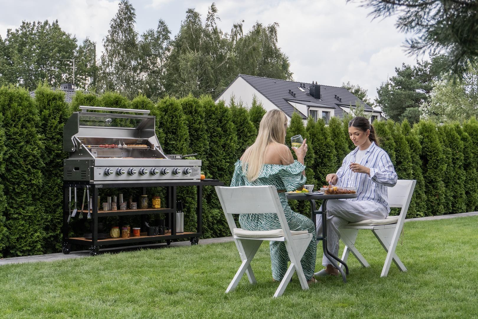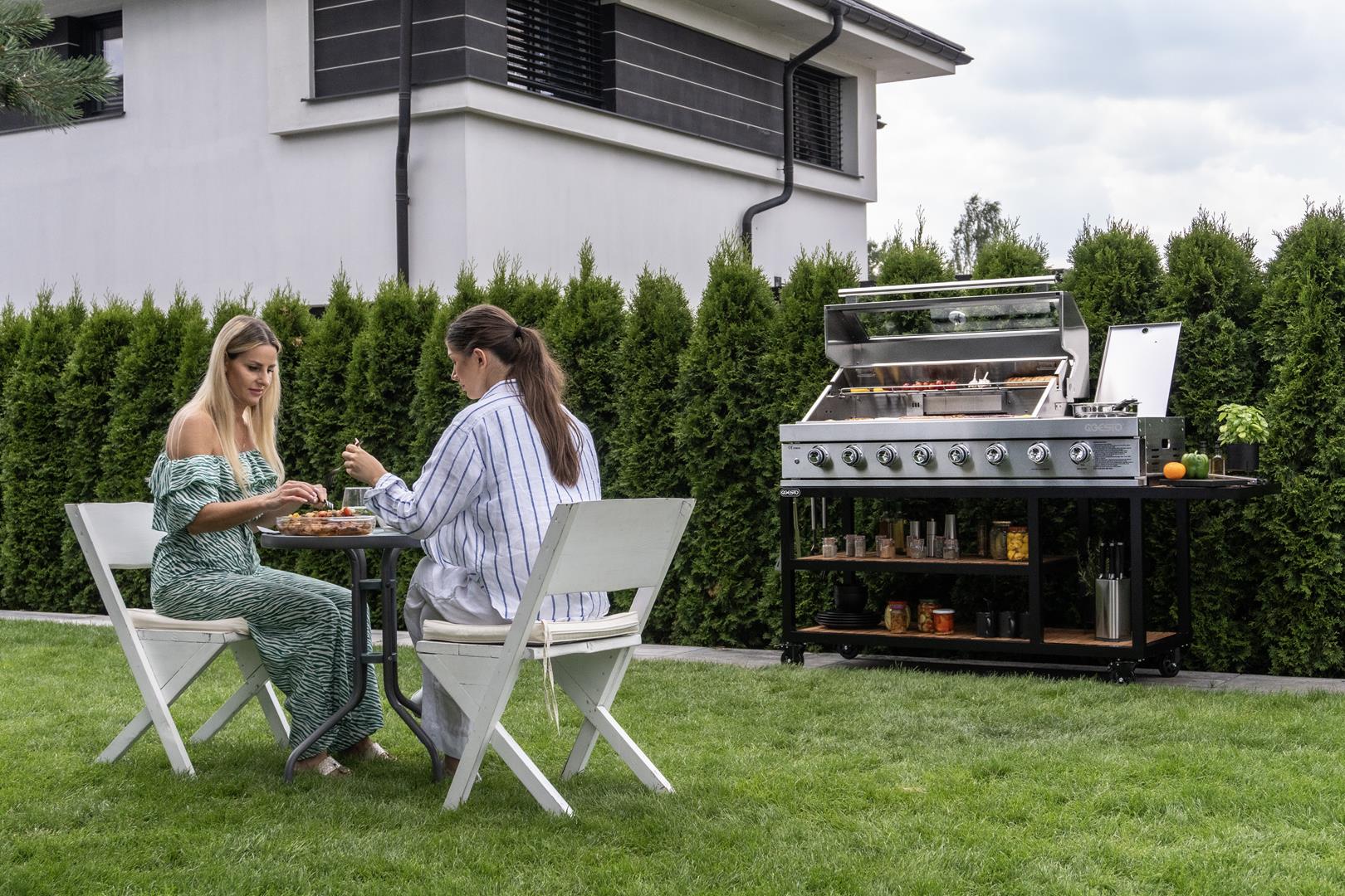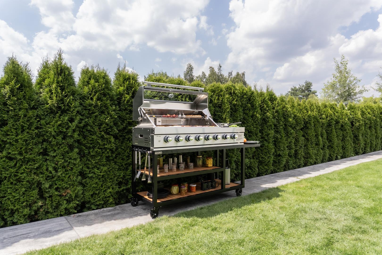 Les touches chaleureuses n’ont pas été oubliées non plus : les tablettes en bois ajoutent du charme et du contraste, créant un espace aussi pratique qu’esthétique. C’est un lieu où la cuisine devient un art et où le design apporte une atmosphère de liberté et de style. Si vous cherchez plus qu’une simple cuisine, PARVI XXL est le choix qui fera ressortir votre jardin et rendra chaque moment passé à l’extérieur plein d’inspiration.
