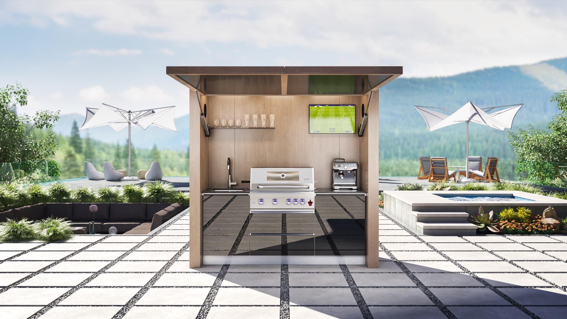 - Façades de meubles en pierre, verre ou panneaux de composite et aluminium.