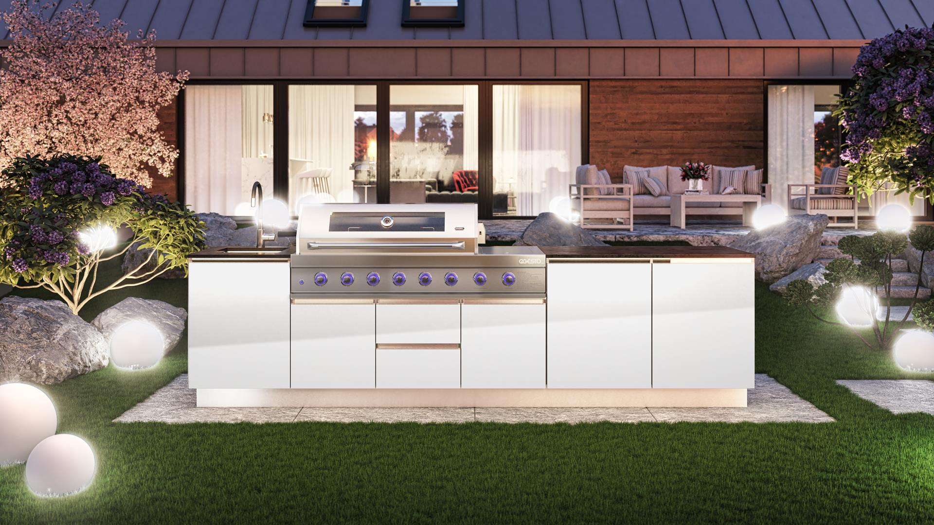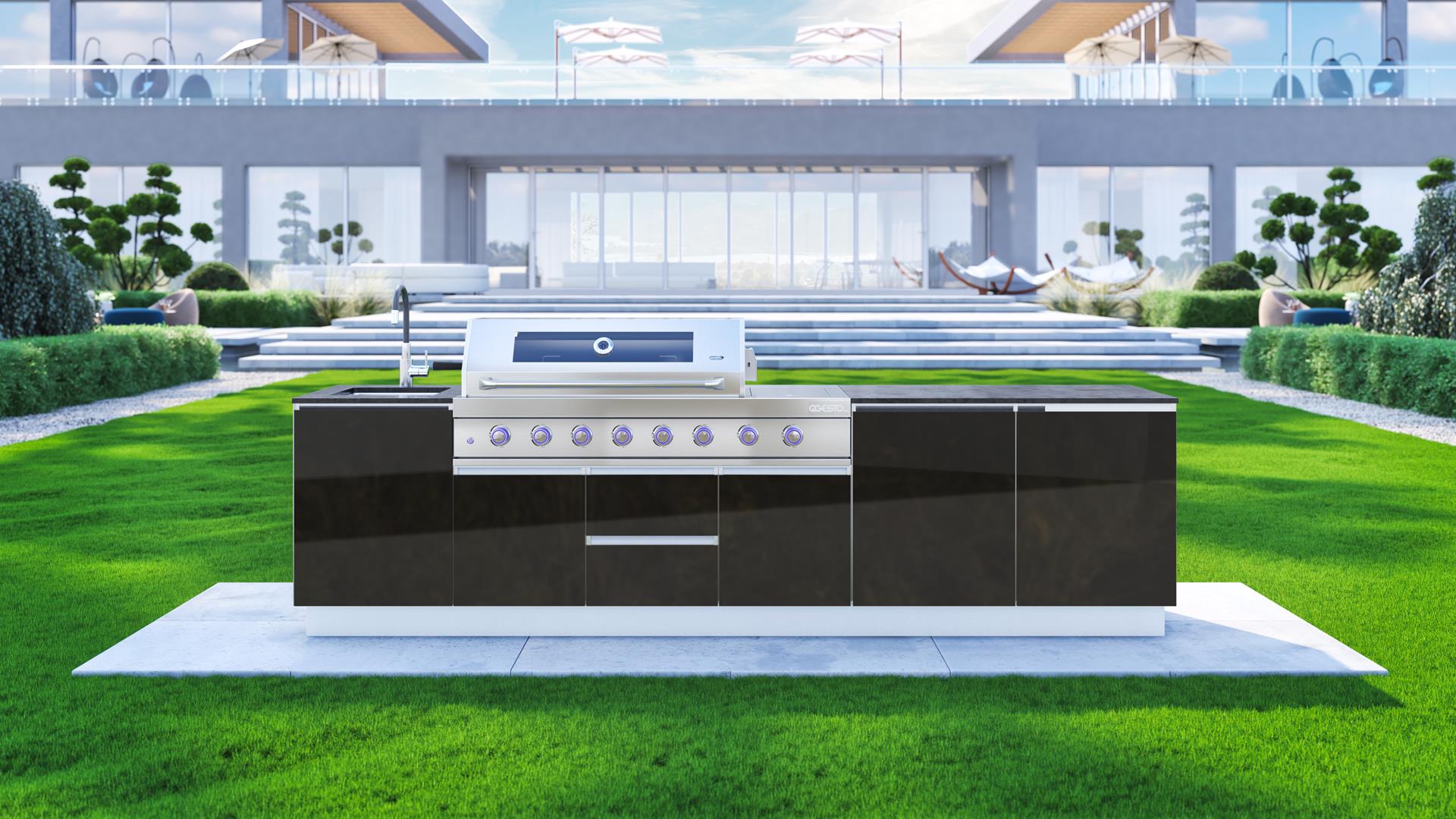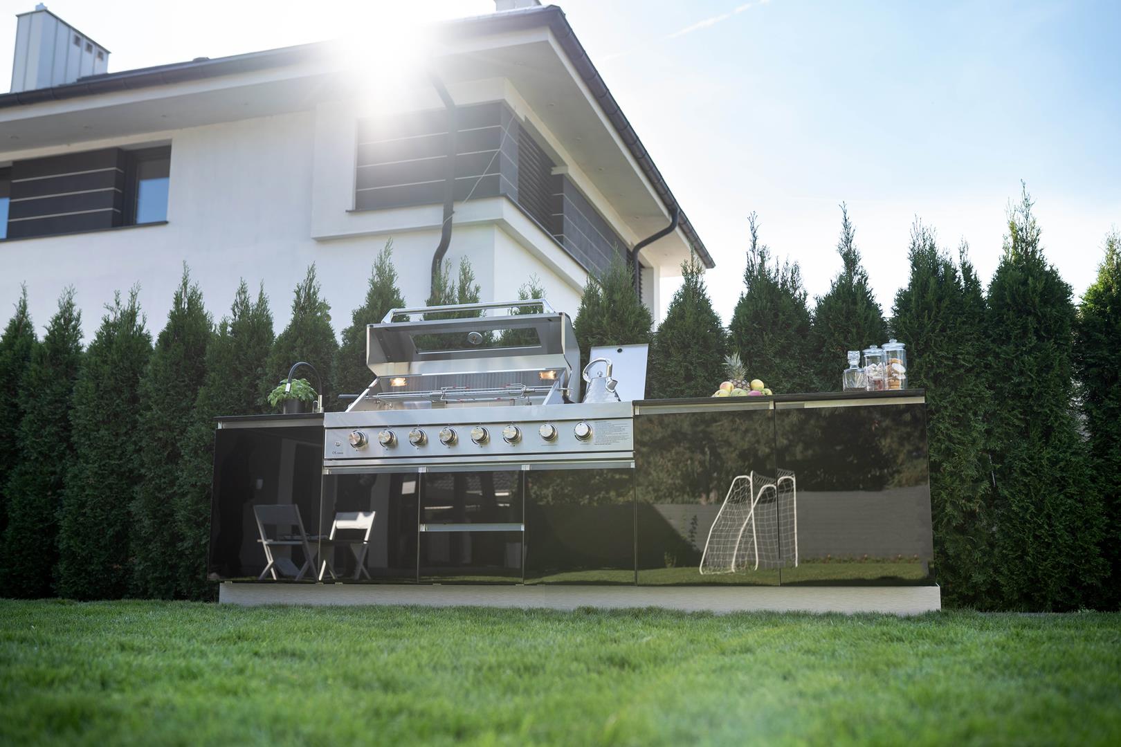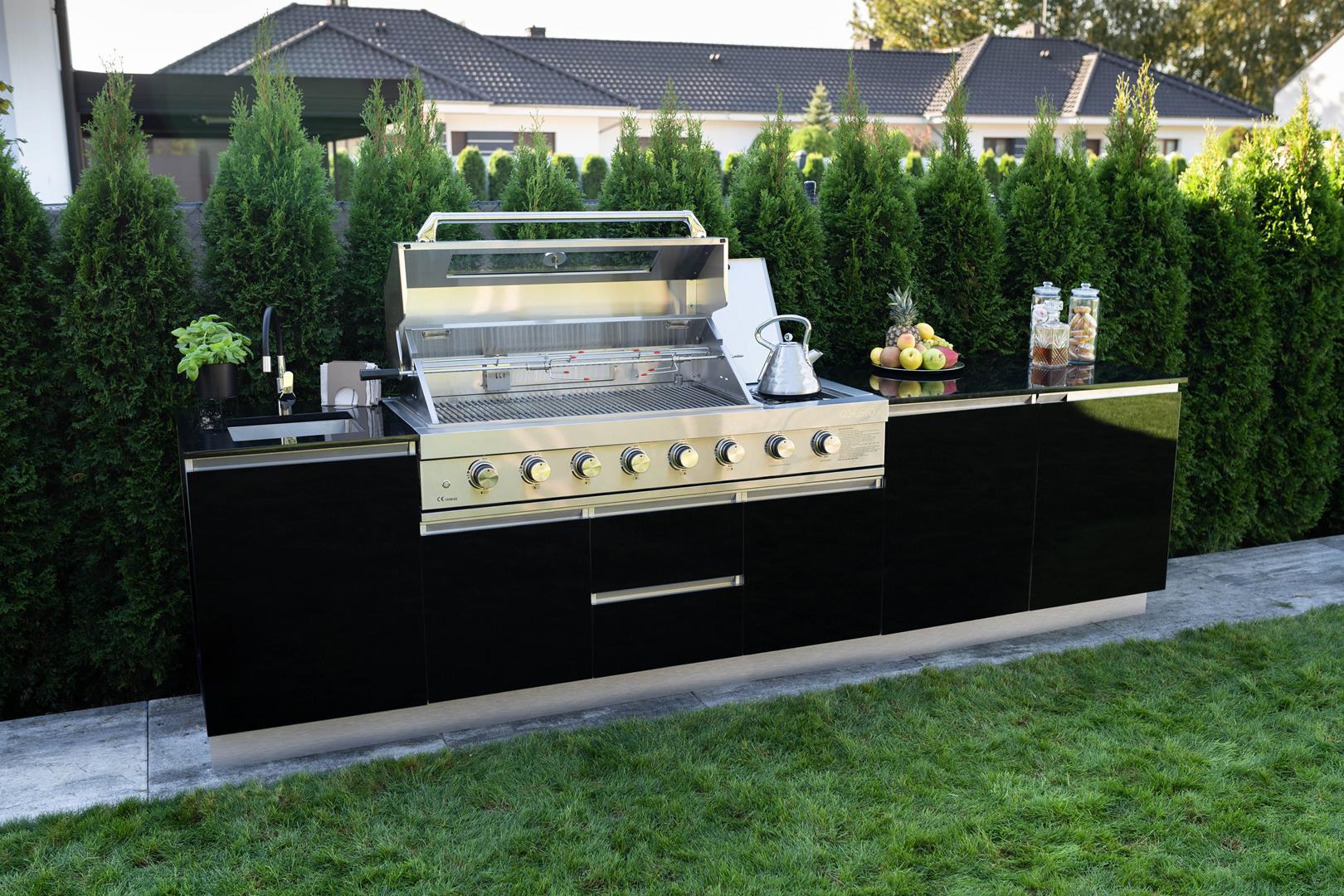 Bring elegance and versatility to your garden with the SAAR XXL garden kitchen. Thanks to its full rear housing, this model can be placed anywhere on your property, becoming the focal point of any arrangement. SAAR XXL impresses with a beautiful finish that can be admired from all sides, adding a modern charm to any setting. When you choose SAAR XXL, you are investing in functionality and style, creating the perfect place to cook and spend time outdoors.