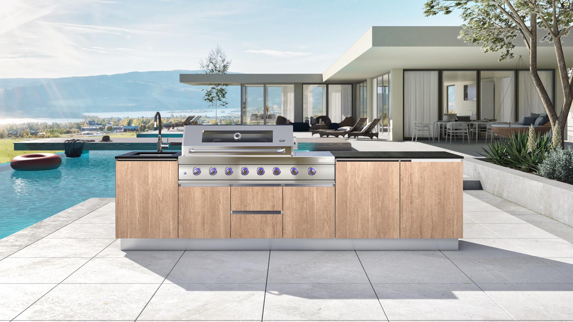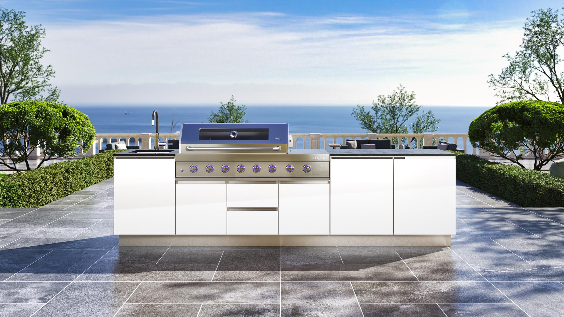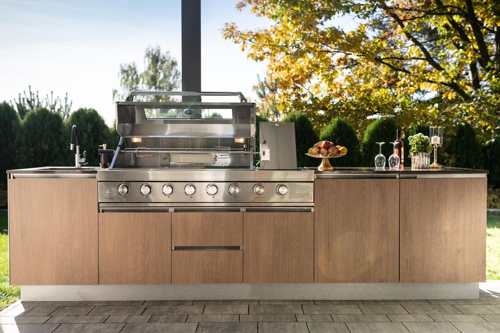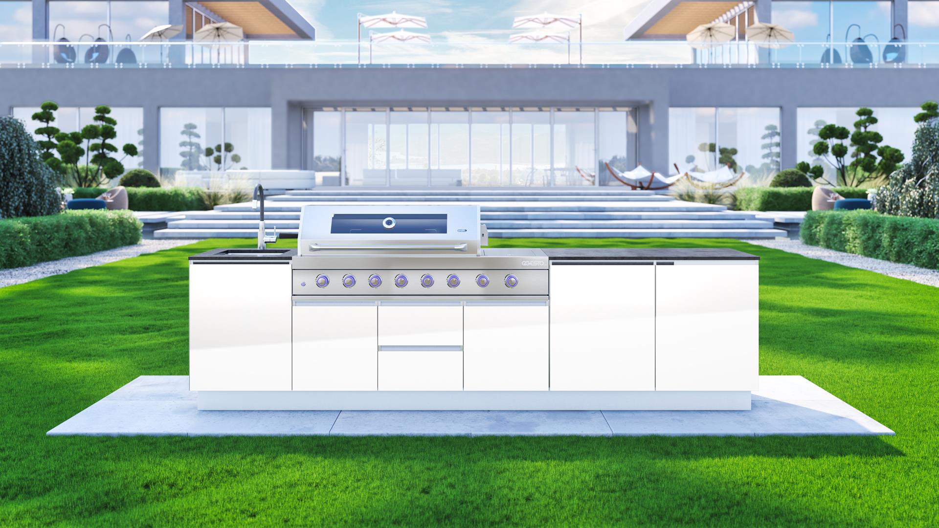 Bring elegance and versatility to your garden with the SAAR XXL garden kitchen. Thanks to its full rear housing, this model can be placed anywhere on your property, becoming the focal point of any arrangement. SAAR XXL impresses with a beautiful finish that can be admired from all sides, adding a modern charm to any setting. When you choose SAAR XXL, you are investing in functionality and style, creating the perfect place to cook and spend time outdoors.