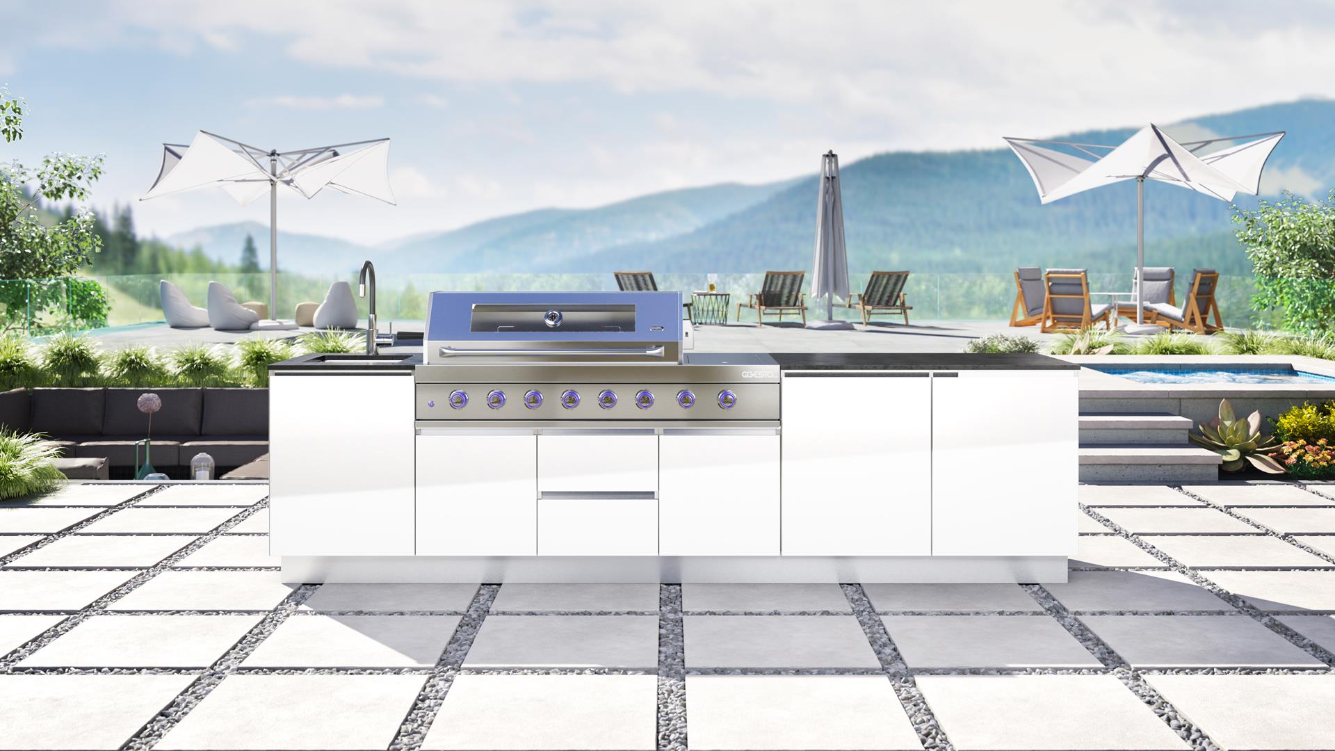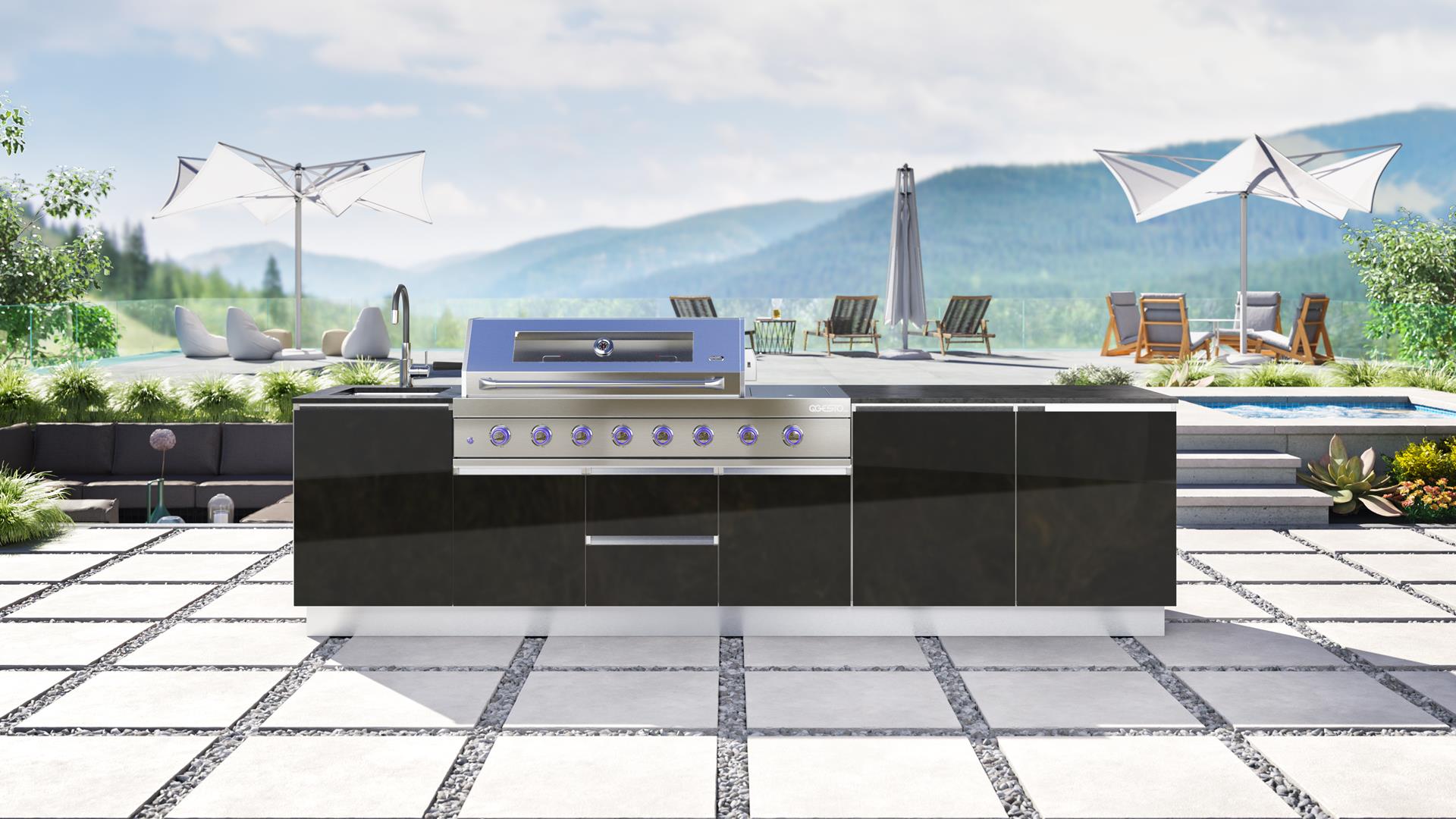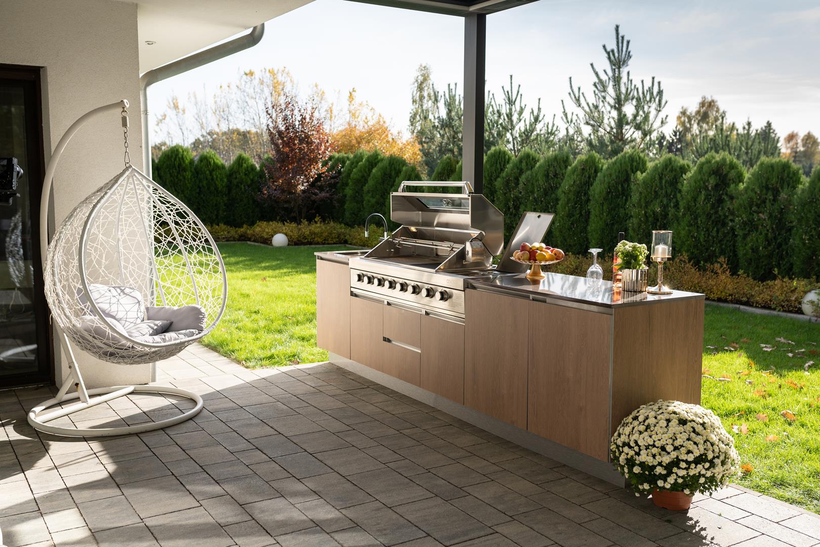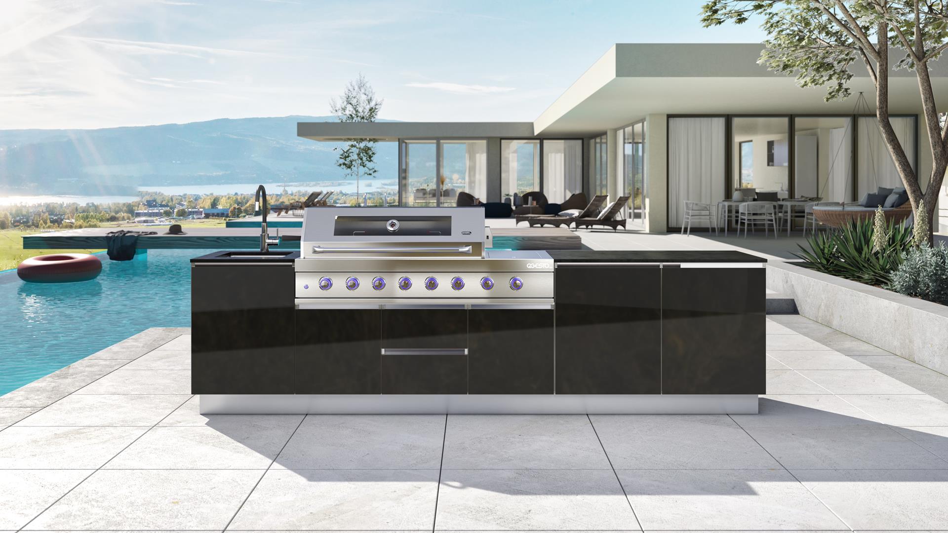 Bring elegance and versatility to your garden with the SAAR XXL garden kitchen. Thanks to its full rear housing, this model can be placed anywhere on your property, becoming the focal point of any arrangement. SAAR XXL impresses with a beautiful finish that can be admired from all sides, adding a modern charm to any setting. When you choose SAAR XXL, you are investing in functionality and style, creating the perfect place to cook and spend time outdoors.